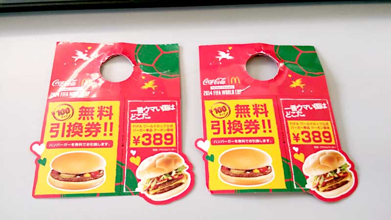 2014年6月24日 マックのハンバーガー無料券2枚